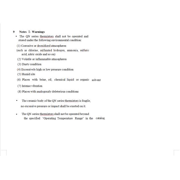Product Description:SMD NTC Thermistor is a high precision chip NTC thermistor, which is a negative temperature thermistor that can be used to detect temperature change accurately. It has a constant (25/50℃) of 3200/ 3380/ 3435/ 3600/ 3950/ 4100/ 4250/ 4500 K and a rated electric power(25℃) of 100 mW, and its dissipation factor is less than or equal to 1.0 mW/℃. The storage temperature range is -40℃ to +125℃, and the permissible operating current (25℃) is 0.31 mA. This NTC thermistor is highly accurate and reliable, making it ideal for temperature measurement, sensing, and control applications.